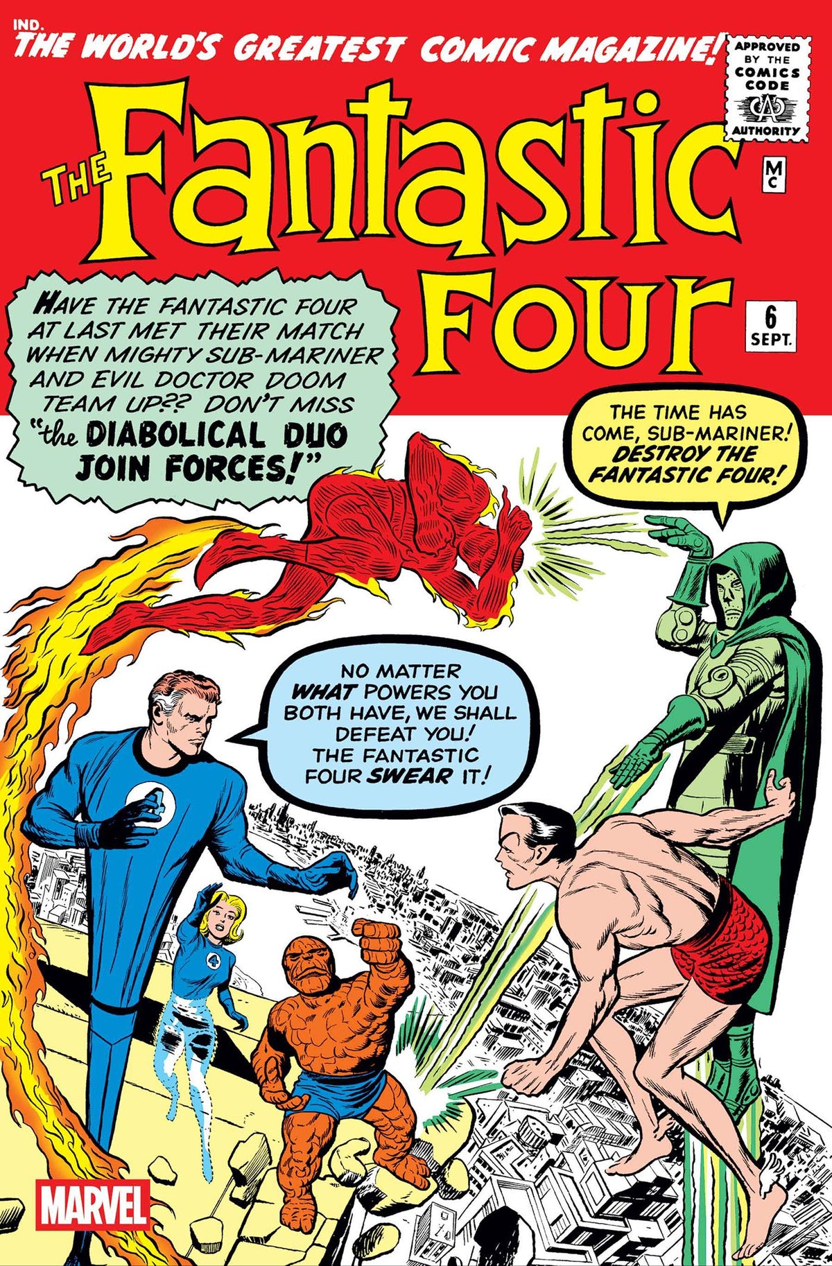 So what happens when Doom and Namor join forces? Find out as the armored tyrant tracks down the Sub-Mariner in his underseas kingdom, inciting him to seek vengeance on the surface world - and its accursed protectors, the Fantastic Four! But when it comes down to battle, just whose side will Namor be on? It's one of the all-time great Marvel comic books, boldly re-presented in its original form, ads and all! Reprinting FANTASTIC FOUR (1961) #6. Marvel is reprinting the first twelve issues of FANTASTIC FOUR as they originally appeared!