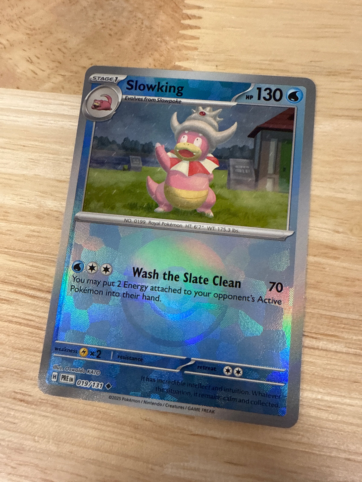Slowking from the Prismatic Evolutions set. This card features Wash the Slate Clean attack.Card Release Date:2025.