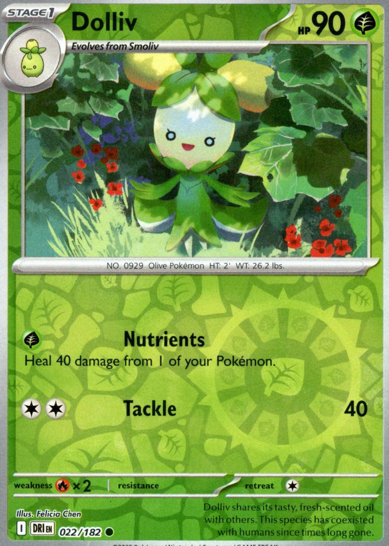 Discover Dolliv from the Destined Rivals set. This powerful card features Nutrients attack. A must-have for collectors and trainers, this card is from 2025.