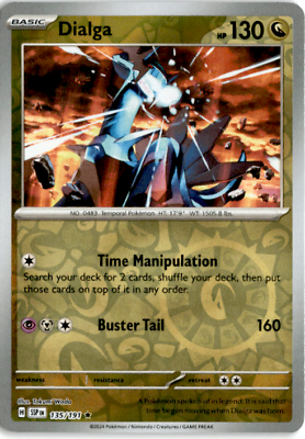 Dialga from the Surging Sparks set. This card features Time Manipulation attack.Card Release Date:2024.