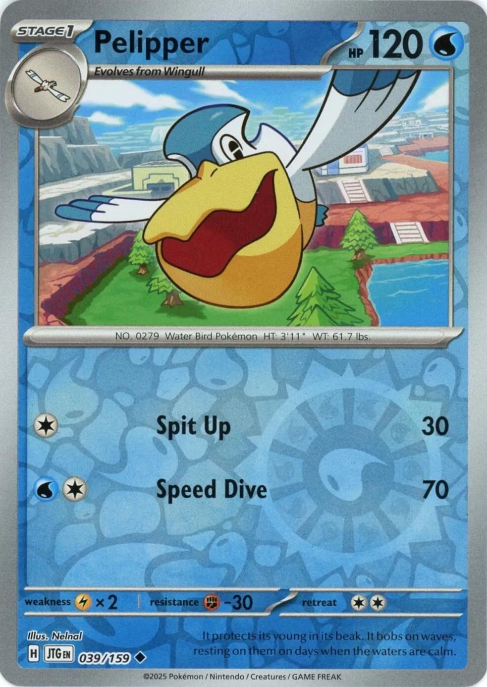 Discover Pelipper from the Journey Together set. This powerful card features Spit Up attack. A must-have for collectors and trainers, this card is from 2025.