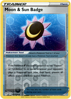 Discover Moon & Sun Badge from the Evolving Skies set. This powerful card features attack. A must-have for collectors and trainers, this card is from 2021.