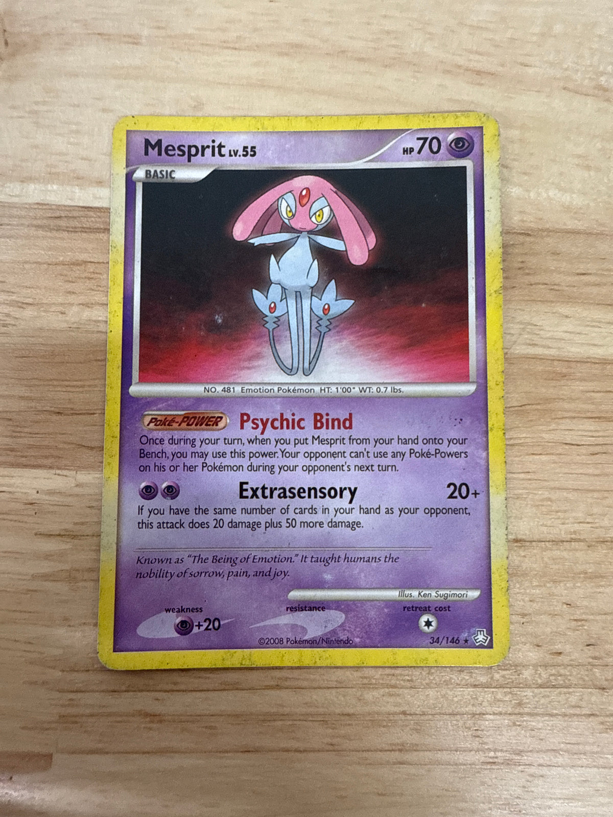 Mesprit from the Legends Awakened set. This card features Extrasensory attack and Psychic Bind ability.Card Release Date:2008.