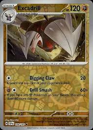 Excadrill from the Surging Sparks set. This card features Digging Claw attack.Card Release Date:2024.