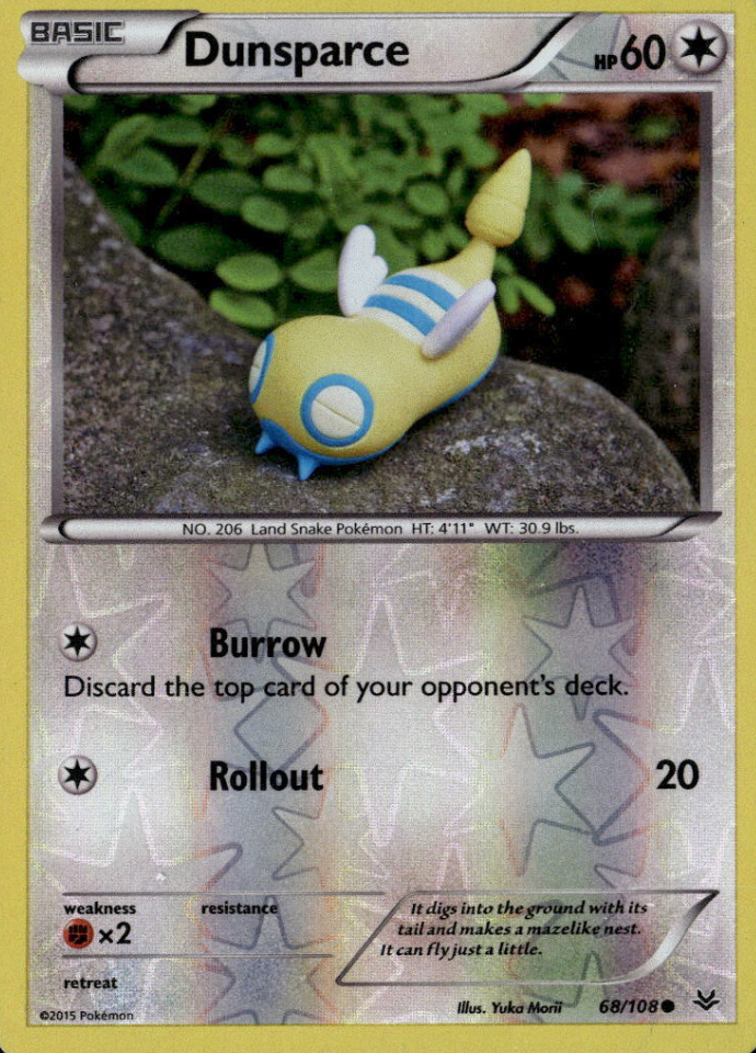 Dunsparce from the Roaring Skies set. This card features Burrow attack.Card Release Date:2015.
